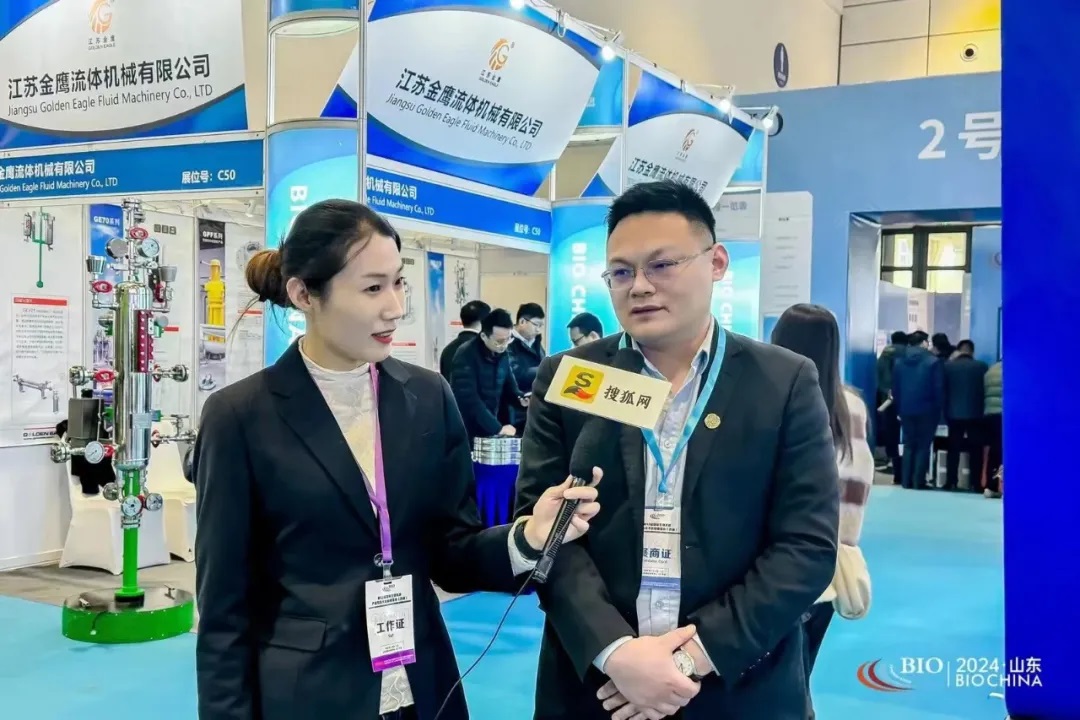 在國際生物發(fā)酵展上,江蘇金鷹剖分式機(jī)封隆重亮相,金鷹王總作為代表接受了搜狐網(wǎng)專訪報道。